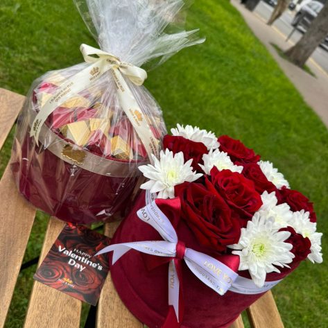 Valentine's Velvet Duo Gift Set (Flowers + 450g Chocolates).